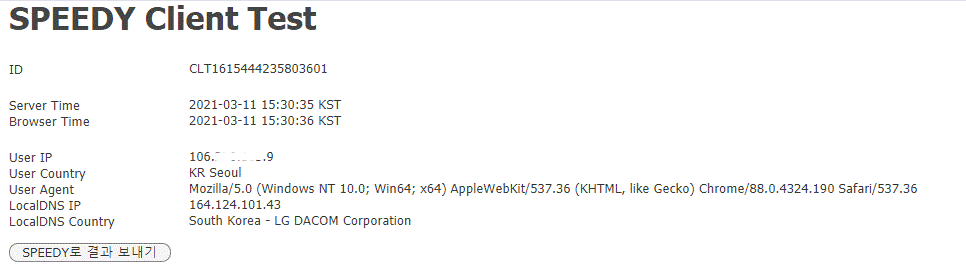 (사설망 이용 시에는 외부로 접속되는 공인 IP가 표시 됩니다.)